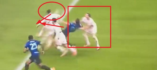 狗哥看到有一种说法,说这球是皮奥向前用脚够球,同时被锁住脖子,两个相反作用力最终导致摔倒,所以可吹可不吹。那么狗哥可以做一个非常简单的类比:你往前跑,对手在你身后拉拽你的球衣,并最终把你拉倒;两个方向相反的作用力最终导致摔倒,是否也是可吹可不吹?把人拉倒,都不算犯规了吗?而从程度来看,这个锁脖子的动作,要远比拉拽球衣更恶劣吧?!