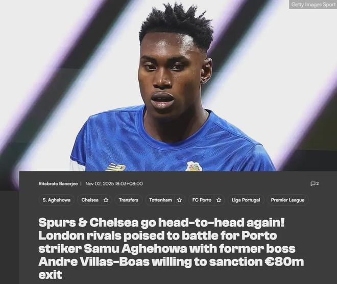 Correio da Manha消息,热刺和切尔西都有意收购萨姆-奥莫罗迪翁-阿格霍瓦,这名21岁的前锋自去年夏天加盟波尔图以来表现出色,他的合同2029年到期。